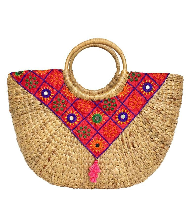 RAFFIA AND CROCHET CHLOE TOTE - BLUE