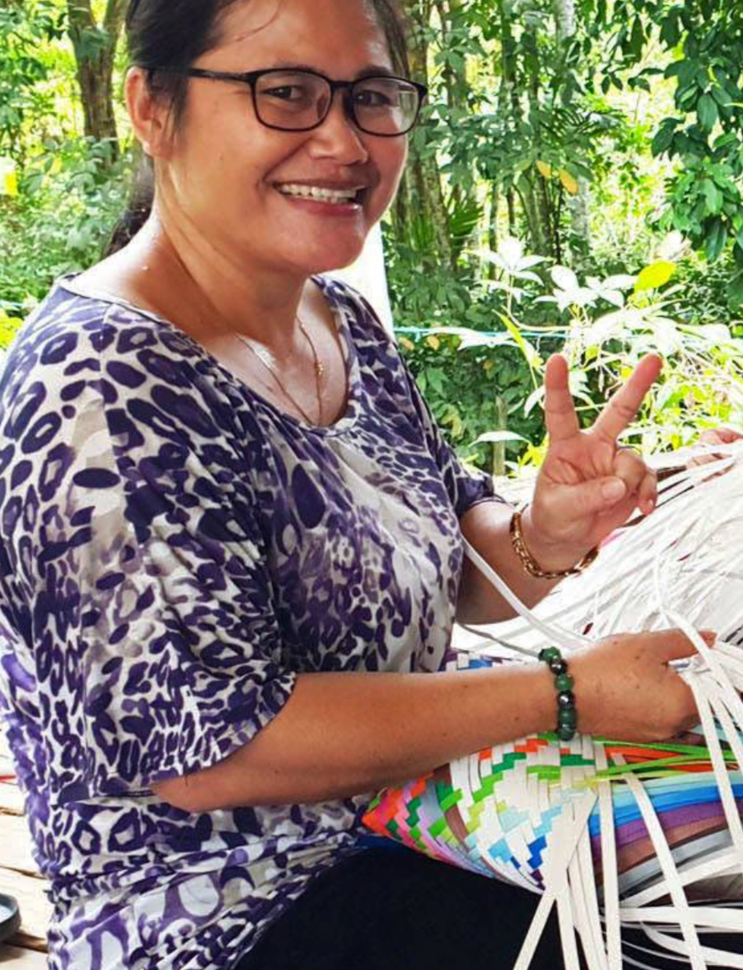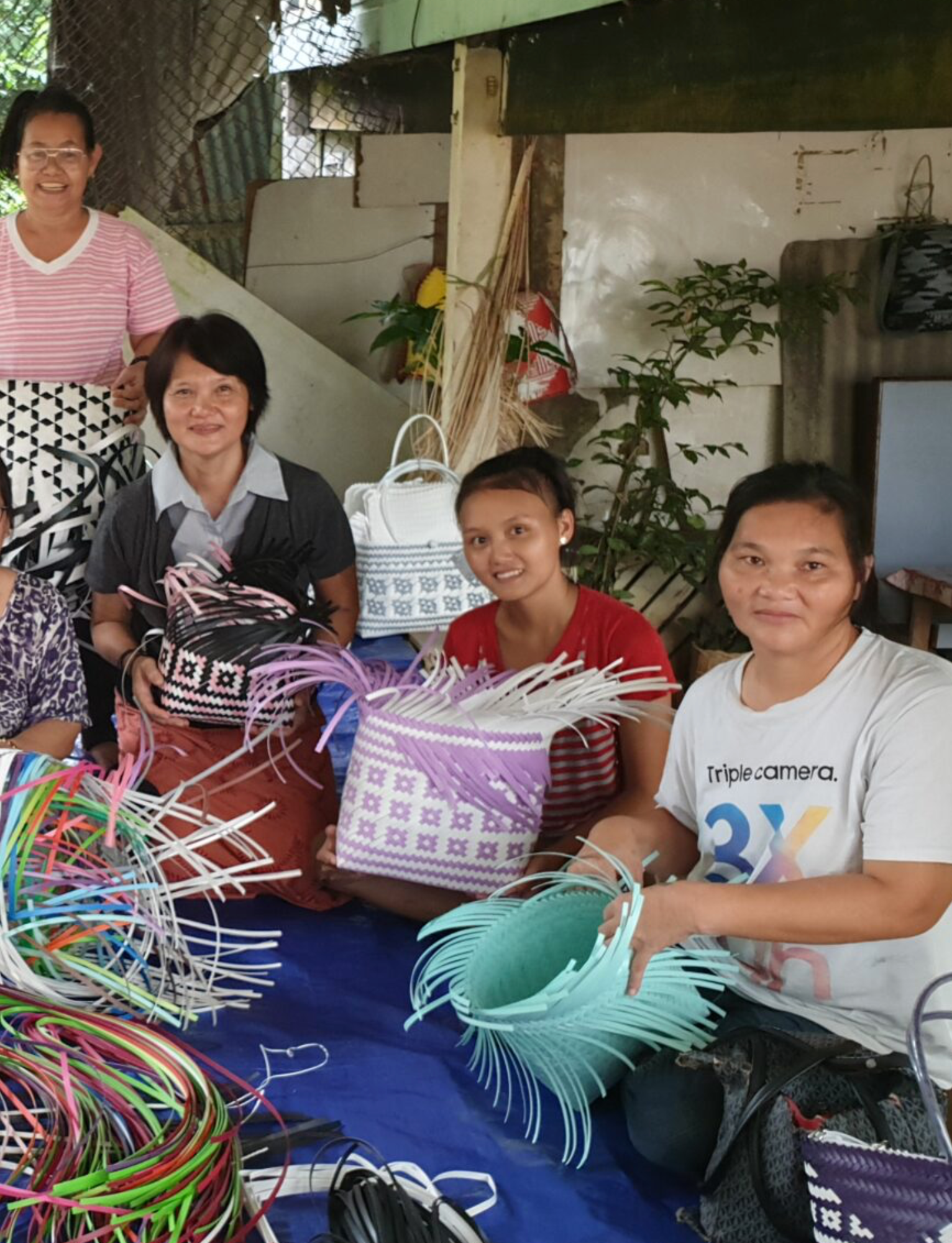 Due to deforestation, the artisans have transitioned from weaving with natural rattan and bamboo from the jungle to using recycled and polypropylene plastic strips — — transforming everyday materials into something truly special.